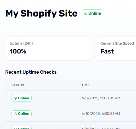 Set up uptime monitoring in seconds. No dashboards packed with noise—just the essentials to keep your site running smoothly.